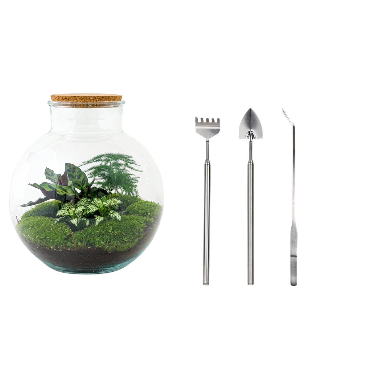 Met een Do-It-Yourself planten terrarium haal je een zelfvoorzienende biotoop in huis waar je nog jarenlang plezier van zal hebben. Nadat jijzelf, of de persoon waaraan jij dit terrarium cadeau gaat geven, met het meegeleverde vijf-stappenplan zelf je eigen mini-ecosysteem in elkaar hebt gezet wordt het water via verdamping door de planten en mossen gerecycled.