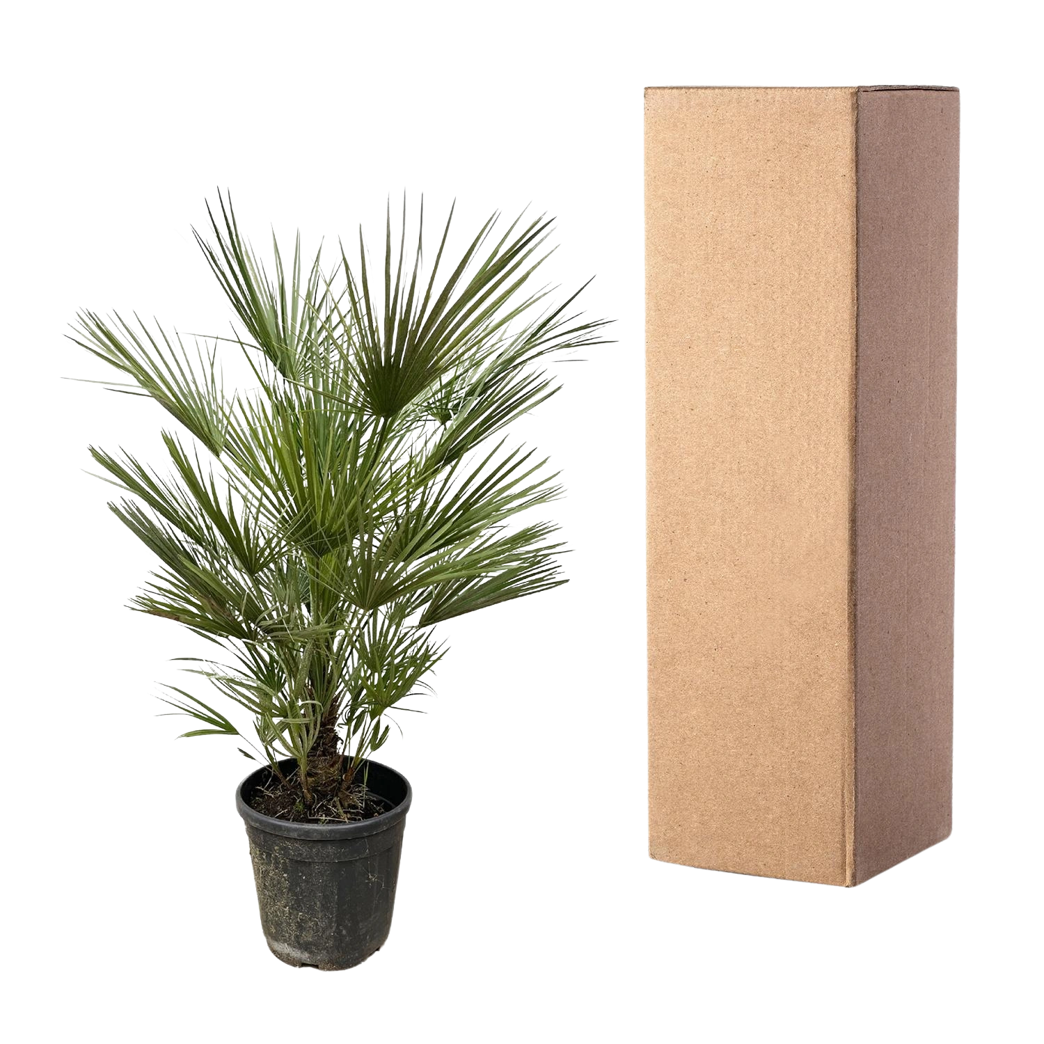 Deze prachtige, tropische plant wordt ook wel de Europese dwergpalm genoemd. Dit is de enige palmsoort die van oorsprong uit Europa komt. Hij groeit vooral rondom de Middellandse zee en fungeert zowel goed als binnenplant en als buitenplant. Deze palm kan namelijk goed tegen de vorst. De Chamaerops Humilis groeit oorspronkelijk in gebieden waar het wat warmer is. Hierdoor kan hij goed tegen fel zonlicht en staat dan ook het liefst op een plek in de volle zon. Geef deze palm water wanneer de grond droog aanvoelt. Je krijgt van ons met een hoogte van ongeveer 150cm. Geleverd in een teeltpot van 35cm kun je direct op zoek naar een plekje voor deze tropische topper!