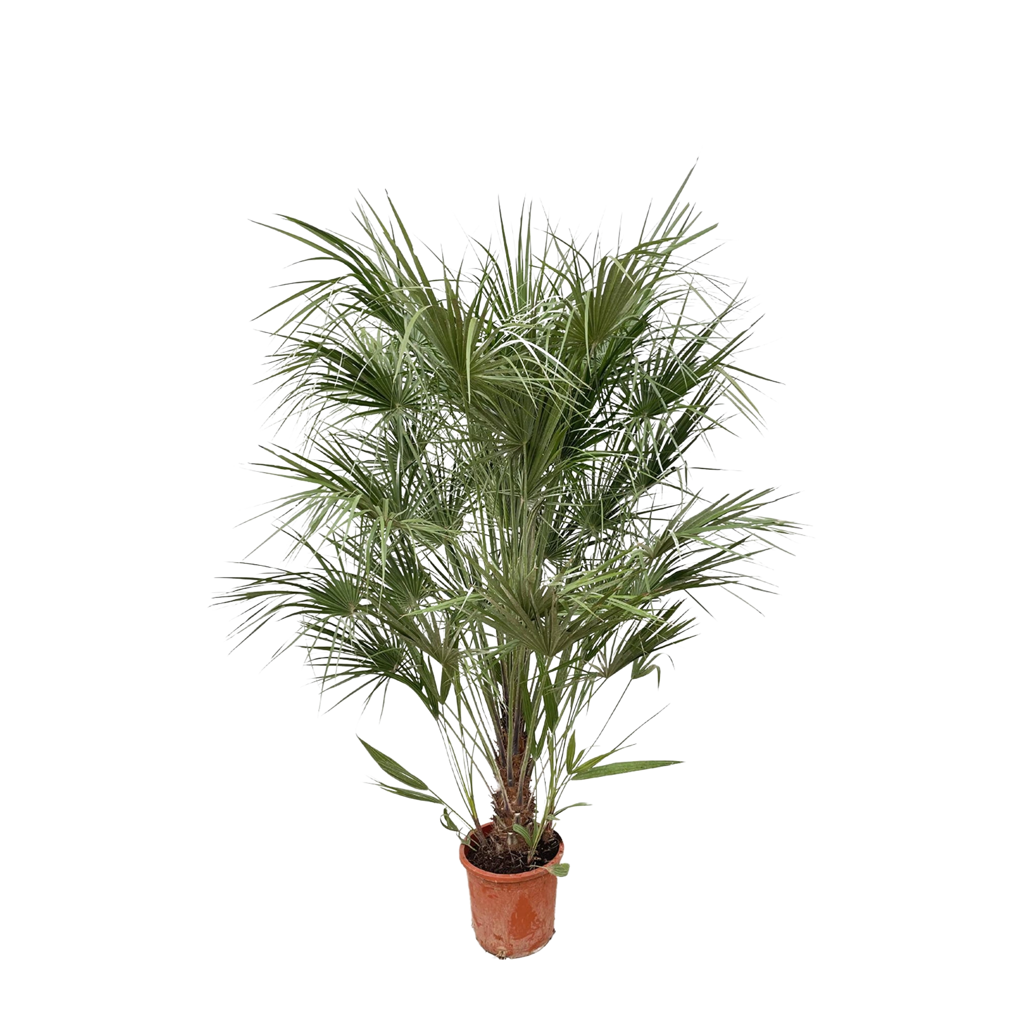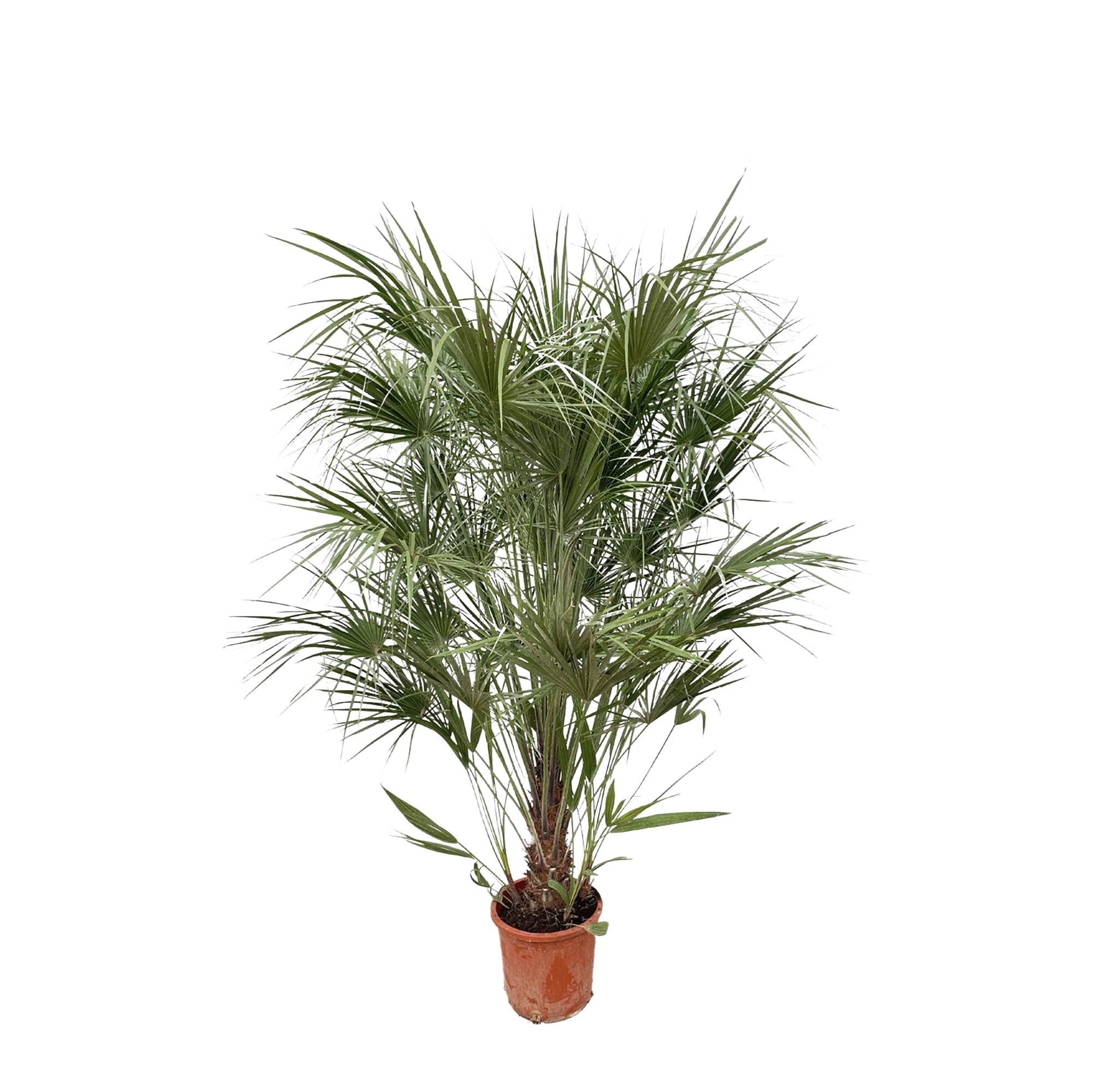 Chamaerops Humilis, ook bekend als de Europese dwergpalm, is een prachtige struik die een vleugje mediterrane pracht en elegantie toevoegt aan tuinen en landschappen. Met zijn gedrongen, vertakte groei en waaierachtige bladeren creëert deze struik direct een gevoel van subtropische allure en rustieke charme. Chamaerops Humilis gedijt goed in zonnige tot gedeeltelijk schaduwrijke omstandigheden en voegt een vleugje exotisme toe aan diverse buitenomgevingen. Met zijn vermogen om een gevoel van mediterrane pracht toe te voegen, is deze struik de ideale keuze voor liefhebbers van weelderige en rustieke landschappen die op zoek zijn naar een opvallende en onderhoudsvriendelijke toevoeging.