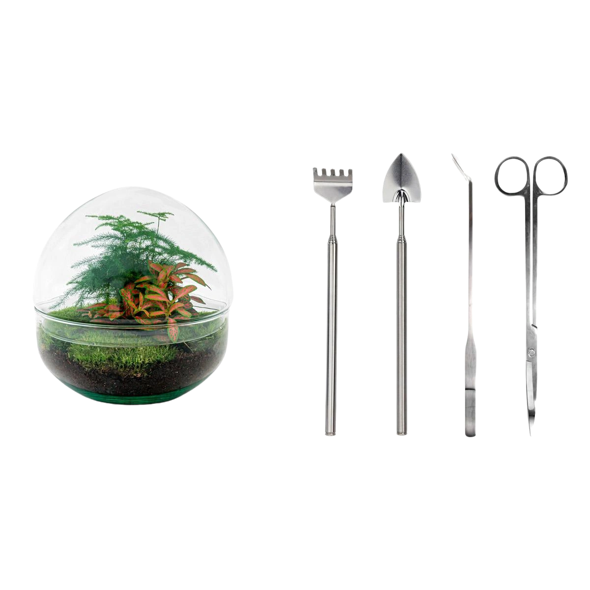 Dit terrarium voelt zich thuis in ieder interieur en worden geleverd als een Do-It-Yourself pakket. Geen groene vingers? Geen zorgen. Alles wat je moet weten over je terrarium leggen we in 5 stappen uit zodat jij binnen 10 minuten kan genieten van je eigen terrarium in huis of op kantoor.