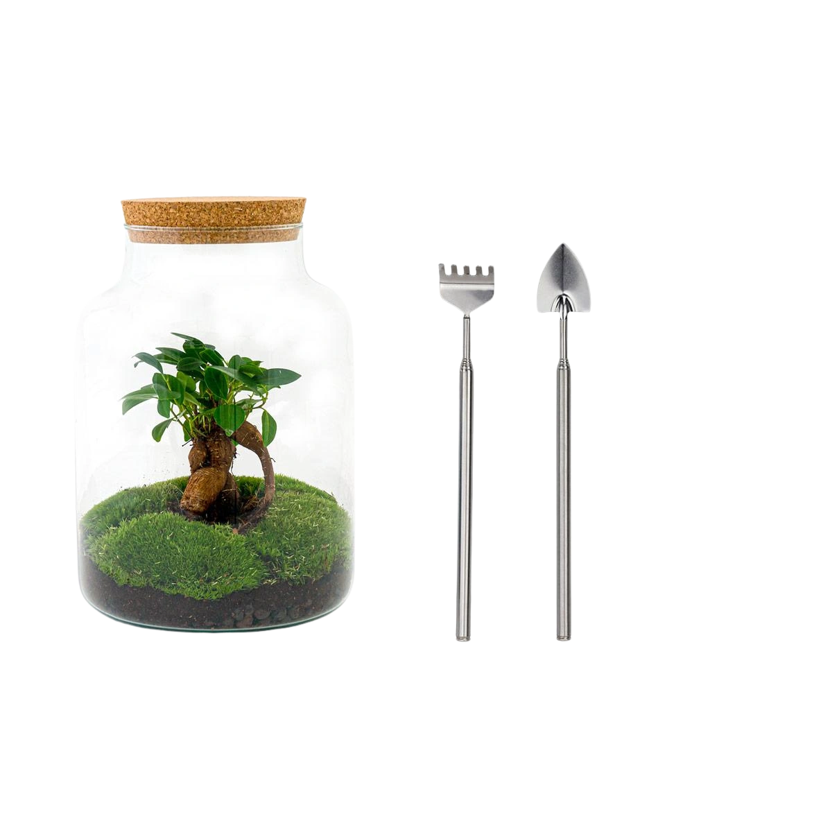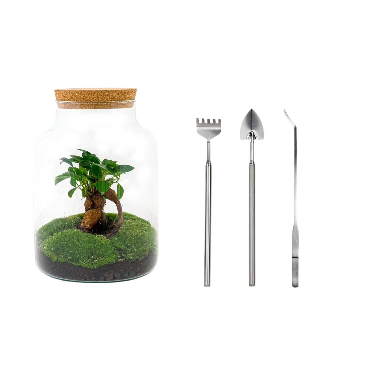 Met een Do-It-Yourself planten terrarium haal je een zelfvoorzienende biotoop in huis waar je nog jarenlang plezier van zal hebben. Nadat jijzelf, of de persoon waaraan jij dit terrarium cadeau gaat geven, met het meegeleverde vijf-stappenplan zelf je eigen mini-ecosysteem in elkaar hebt gezet wordt het water via verdamping door de planten en mossen gerecycled.