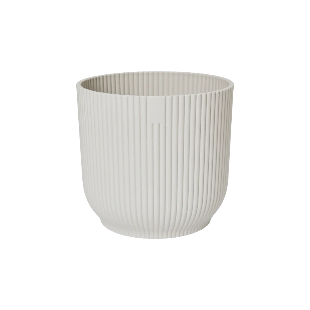 - Uiterlijk van de pot: De Pot Elho Vibes Fold heeft een subtiel geribbeld patroon en een eigentijds, minimalistisch design. De zachte, natuurlijke kleur past in elk interieur en biedt een stijlvol accent voor je planten.