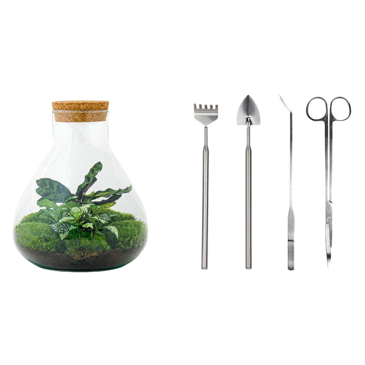Met een Do-It-Yourself planten terrarium van urbanjngl haal je een zelfvoorzienende biotoop in huis waar je nog jarenlang plezier van zal hebben. Nadat jijzelf, of de persoon waaraan jij dit terrarium cadeau gaat geven, met het meegeleverde vijf-stappenplan zelf je eigen mini-ecosysteem in elkaar hebt gezet wordt het water via verdamping door de planten en mossen gerecycled.