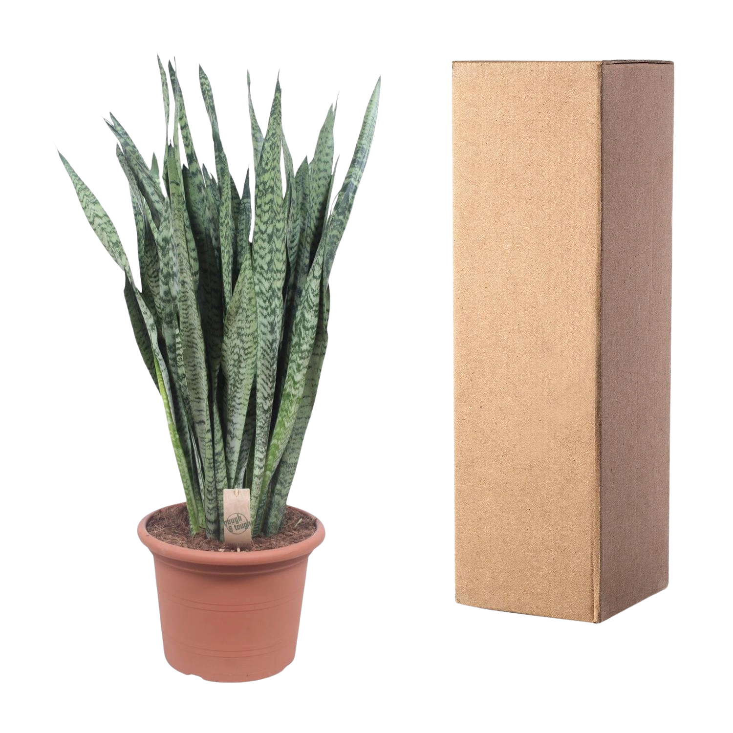 Jouw plant wordt met de grootste zorg verpakt in een stevige doos, speciaal ontworpen voor (kamer)planten. Zowel de pot als de aarde worden beschermd met een speciale hoes, en de plant wordt stevig gefixeerd in de verpakking. Zo zorgen wij ervoor dat je Sansevieria Zeylenica fris, gezond en onbeschadigd bij je aankomt.