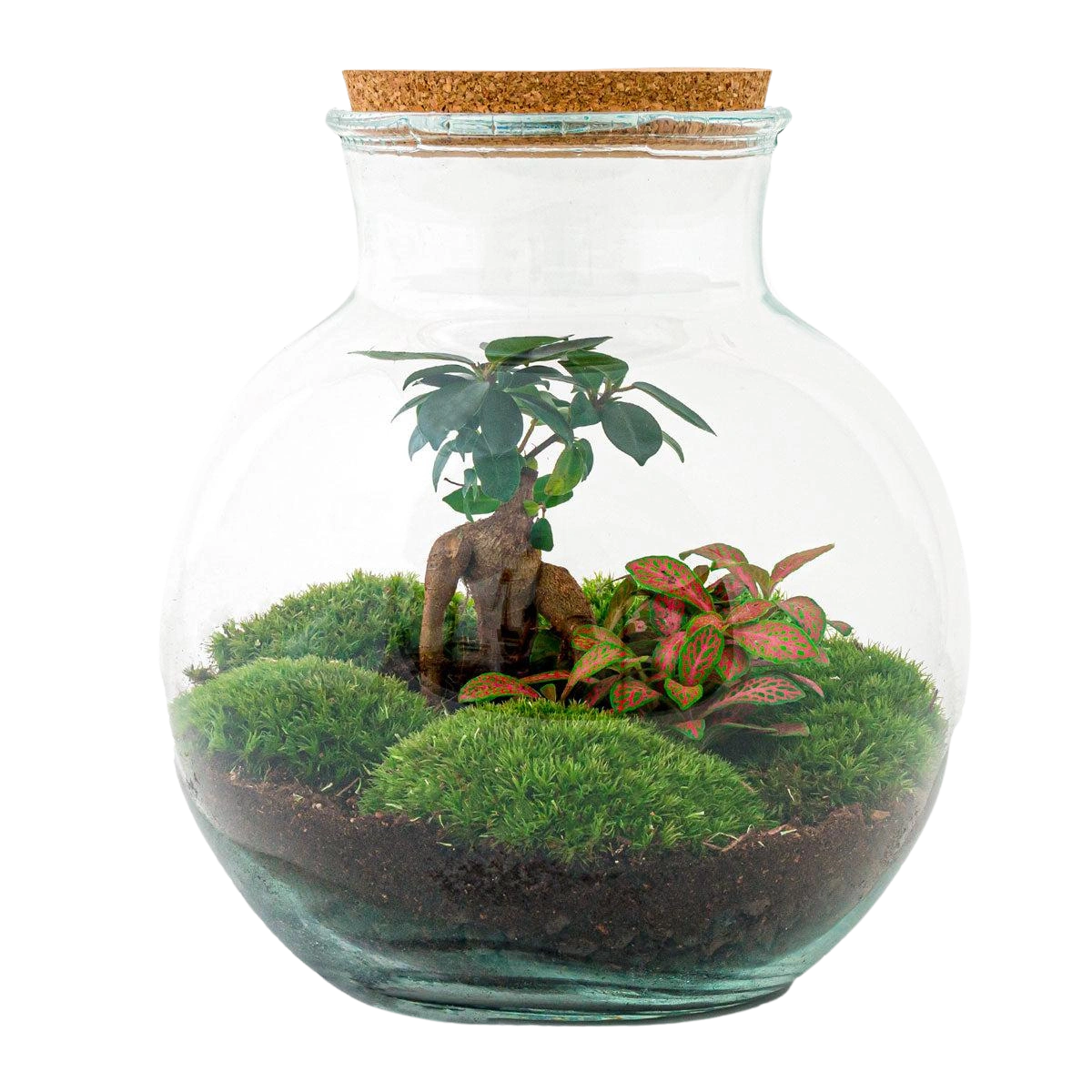 Met een Do-It-Yourself planten terrarium haal je een zelfvoorzienende biotoop in huis waar je nog jarenlang plezier van zal hebben. Nadat jijzelf, of de persoon waaraan jij dit terrarium cadeau gaat geven, met het meegeleverde vijf-stappenplan zelf je eigen mini-ecosysteem in elkaar hebt gezet wordt het water via verdamping door de planten en mossen gerecycled.