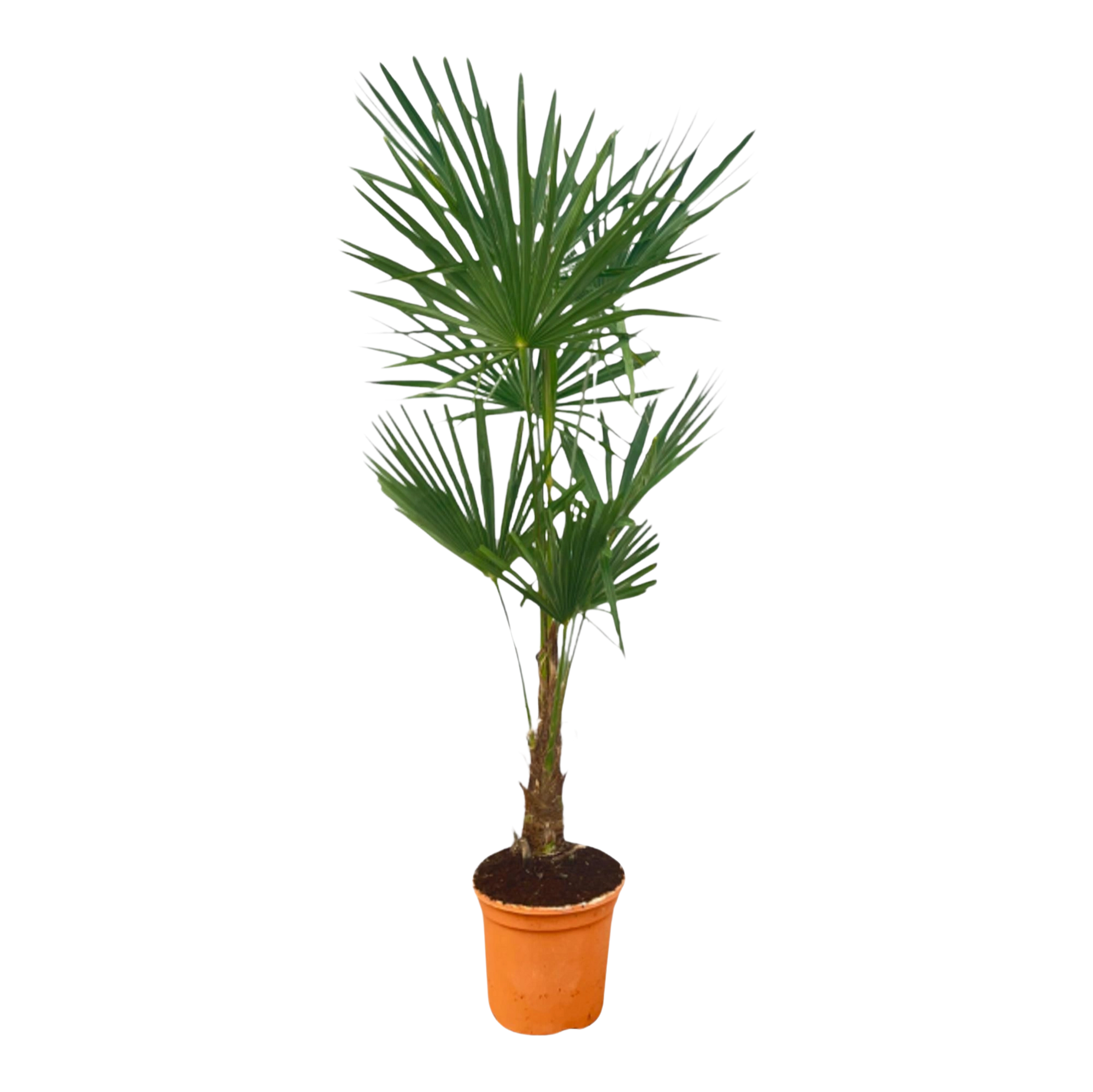 De Trachycarpus Fortunei heeft grote, groene waaiervormige bladeren die zorgen voor een tropische uitstraling. De stevige stam is bedekt met vezels en geeft de palm een robuust, karaktervol uiterlijk. Deze exotische plant is een echte blikvanger voor tuin of interieur.