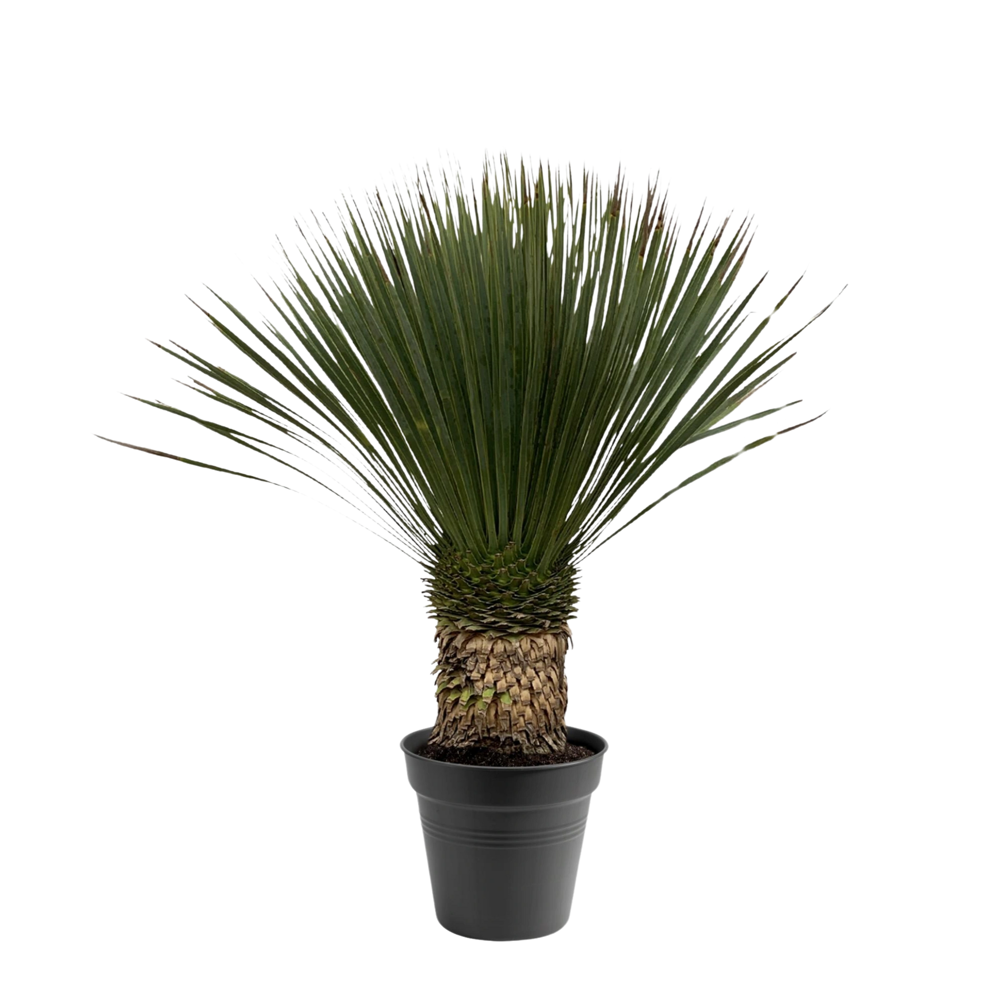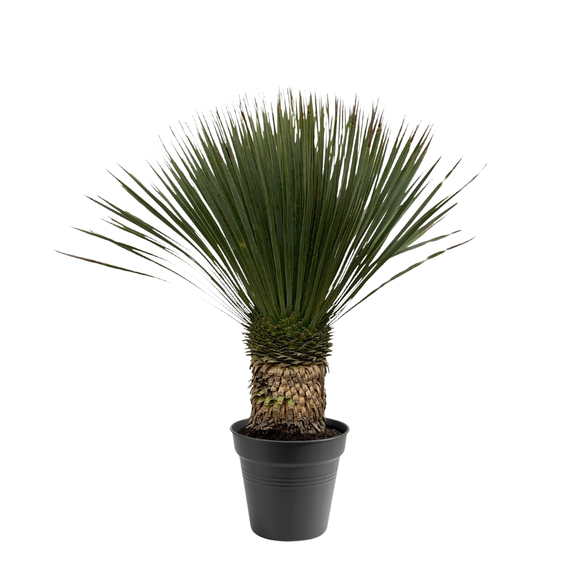 De Yucca Rostrata is een opvallende, onderhoudsarme plant met smalle, blauwgrijze bladeren die in een sierlijke rozet uit de top groeien. De stevige bladeren geven de plant een moderne en stoere uitstraling, terwijl de dikke, verhoute stam zorgt voor een robuust karakter. Deze Yucca is perfect voor een zonnige plek, zowel binnen als buiten, en is goed bestand tegen droogte en kou. Ideaal voor liefhebbers van exotische, maar makkelijke planten. Geef spaarzaam water en laat de grond volledig uitdrogen tussen de gietbeurten.